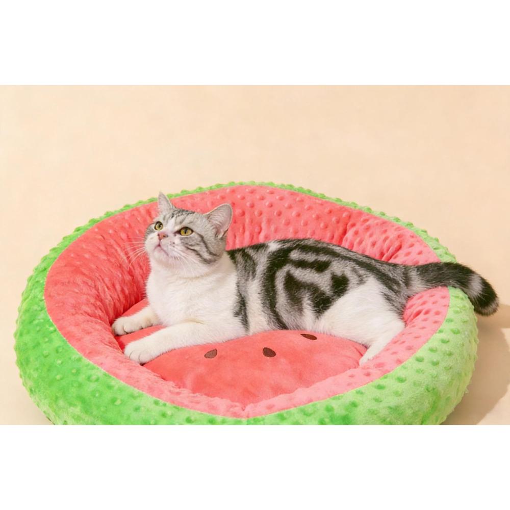 ふんわり生地が気持ちいい、スイカモチーフのペットベッド