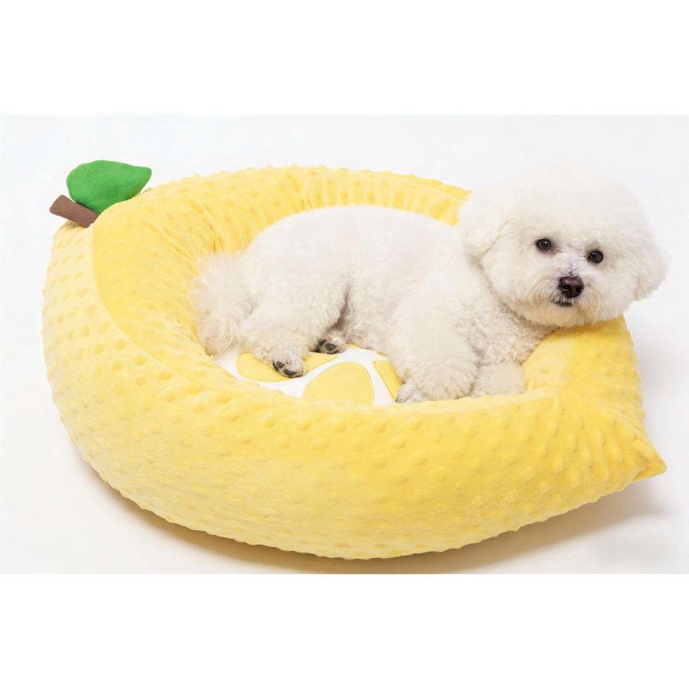 ふんわり生地が気持ちいい、レモンモチーフのペットベッド