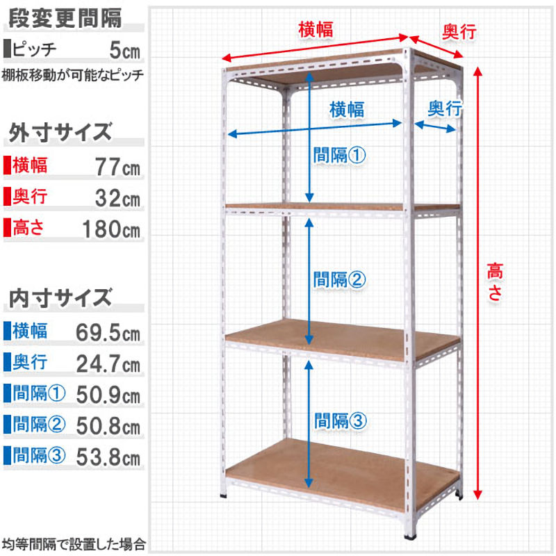 北島 アングル棚 AD-41-6-W ホワイト 幅75×奥行30×高さ180cm