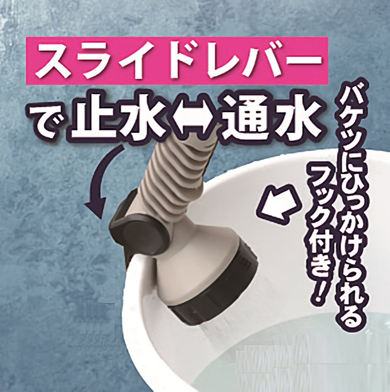 ●ノズル上部をバケツ等にひっかけることができ、水ためを手放しでラクラク行えるひっかけ機能付き。