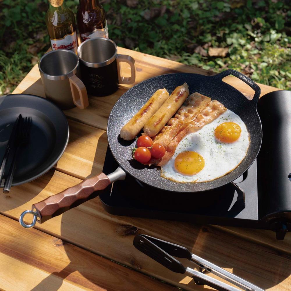 ガス火・焚き火・IH等、オール熱源対応で、キャンプでも自宅でもお使いいただけます。