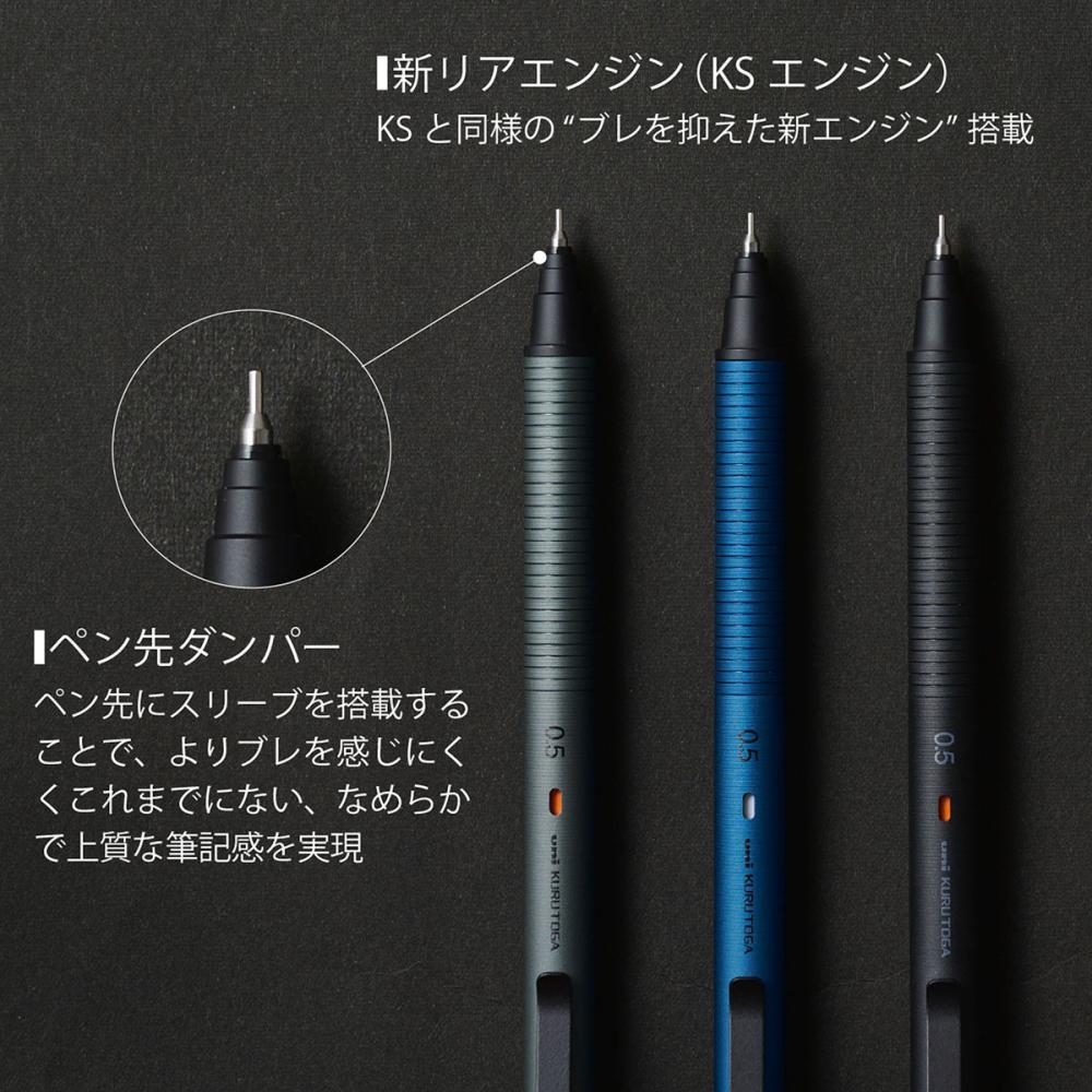 ペン先の動きを最小限に抑えたクルトガエンジンを搭載。ペン先に筆記時の衝撃を和らげる樹脂製パーツ「ニブダンパー」を搭載。ペン先の動きを感じにくく、安定した書き味を実現。