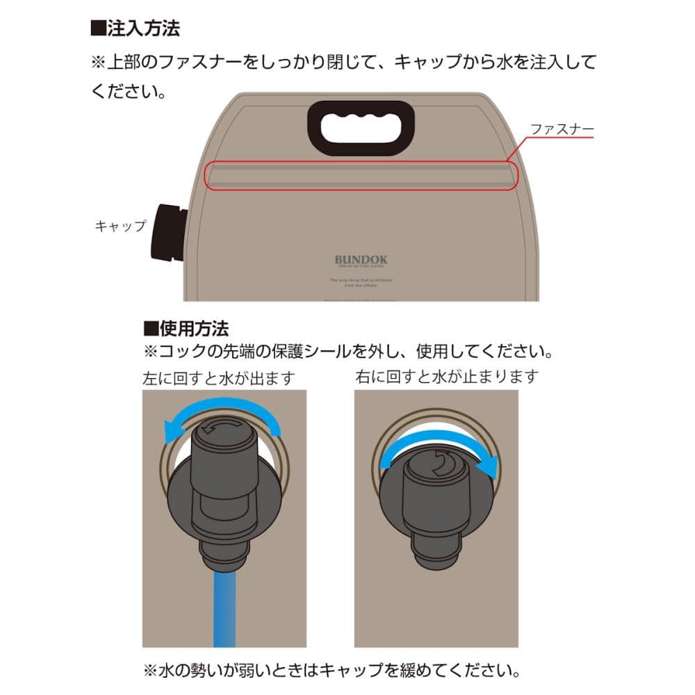 材質:本体/ポリエチレン・PET、コック/ポリプロピレン・ポリエチレン・熱可塑性エラストマー