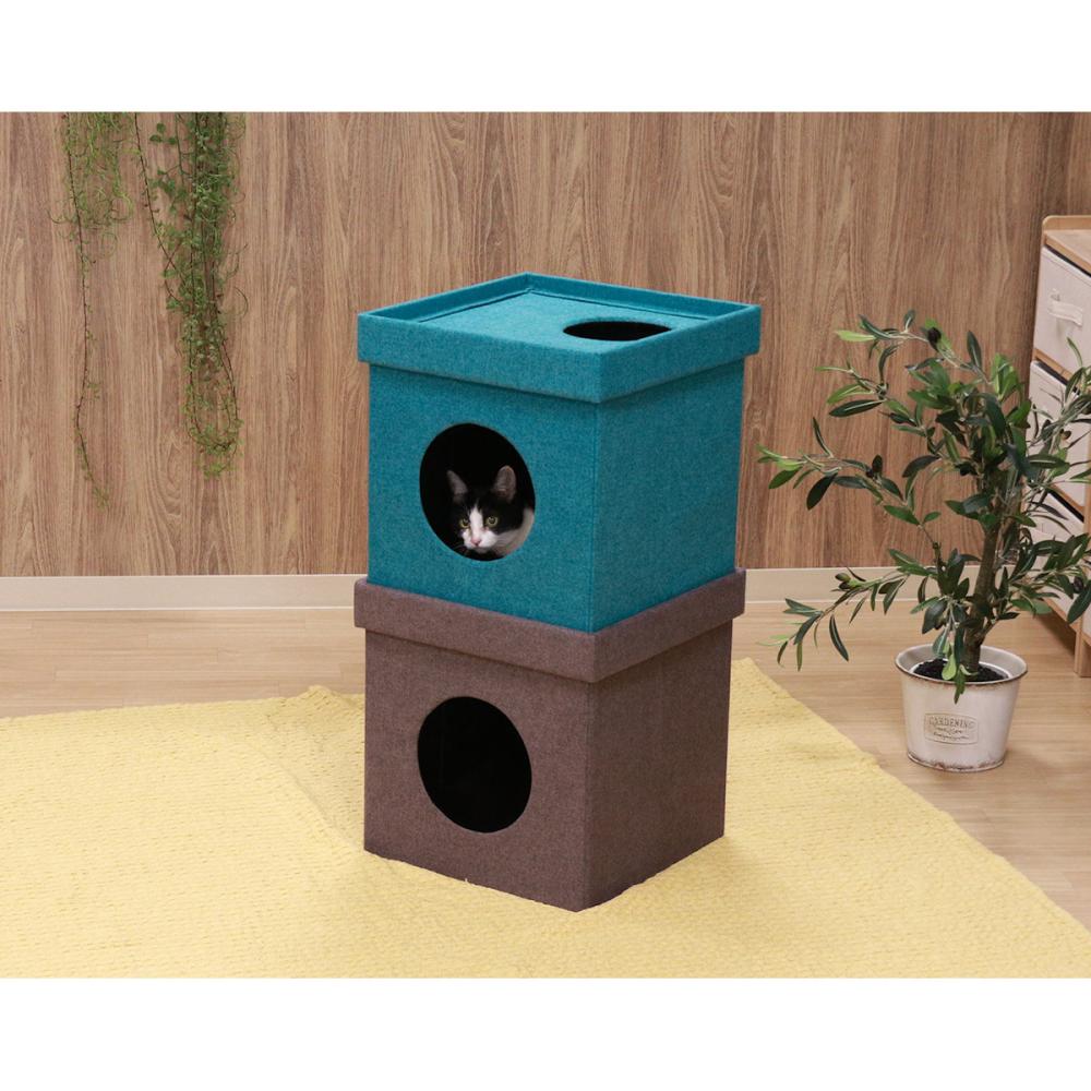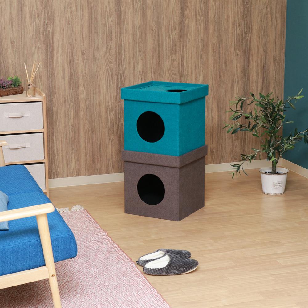 ■ペットも喜ぶ2段のキューブハウス!背の高いペットハウスもバイカラーだから、お洒落でかわいい!