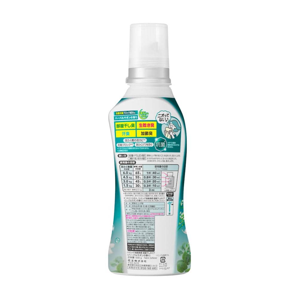 使用上の注意:●用途外に使わない。 ●子供の手の届く所に置かない。 ●認知症の方などの誤飲を防ぐため、置き場所に注意する。 ●原液が直接衣料にかからないようにする。 ●使用の時は、液が目に入らないように注意する。 ●柔軟仕上げ剤の投入口や、自動投入機能付き洗たく機のタンクを使う場合は、洗たく機の取扱説明書に従う。 ●高温や低温、直射日光をさけて、保管する。