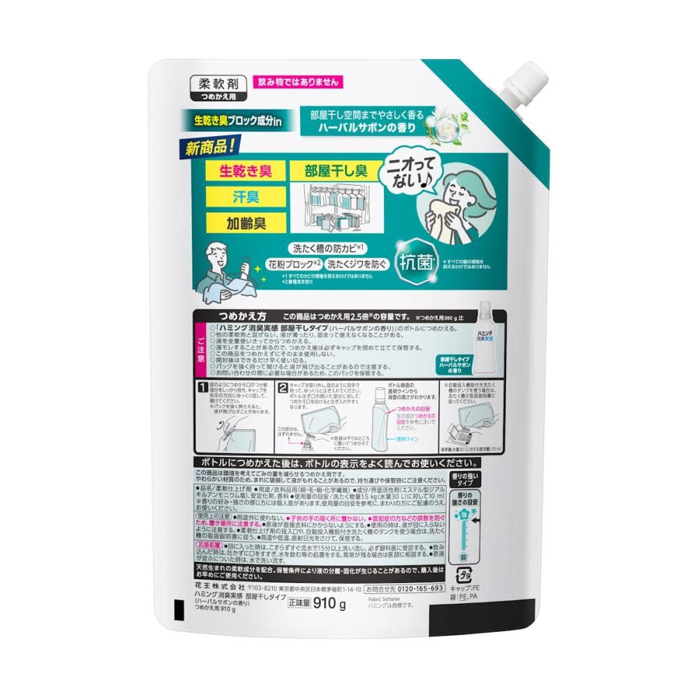 使用上の注意:つめかえ方 ご注意 ○「ハミング消臭実感 部屋干しタイプ(ハーバルサボンの香り)」のボトルにつめかえる。 ○他の柔軟剤と混ぜない。液が濁ったり、固まって使えなくなることがある。 ○液を全量使いきってからつめかえる。 ○液モレすることがあるので、つめかえ後は必ずキャップを閉めて立てて保管する。 ○この商品をつめかえずにそのまま使用しない。 ○開封後はできるだけ早く使い切る。 ○パックを強く持って開けると液が飛び出ることがあるので注意する。 ○お問い合わせの際に必要な場合があるため、このパックを保管する。 使用上の注意 ●用途外に使わない。 ●子供の手の届く所に置かない。 ●認知症の方などの誤飲を防ぐため、置き場所に注意する。 ●原液が直接衣料にかからないようにする。 ●使用の時は、液が目に入らないように注意する。 ●柔軟仕上げ剤の投入口や、自動投入機能付き洗たく機のタンクを使う場合は、洗たく機の取扱説明書に従う。 ●高温や低温、直射日光をさけて、保管する。