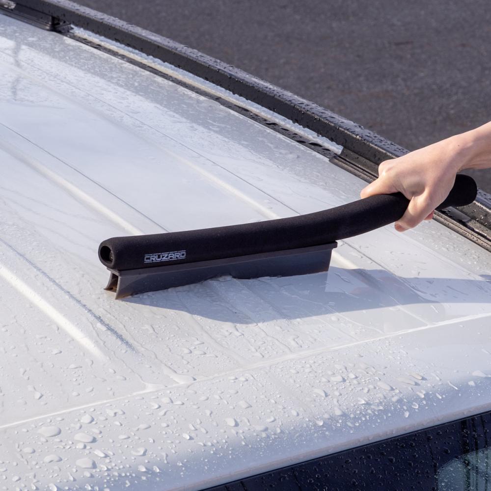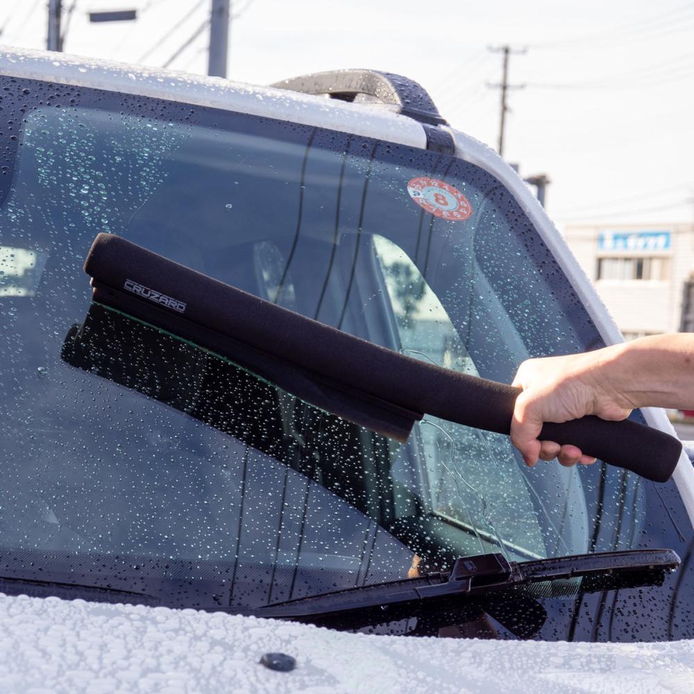 ●車のボディやガラスにブレード部を軽く当て、なでるように水をはらってください。