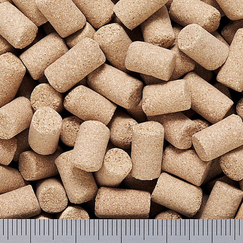 原材料・成分:カニガラ粉末、エンドウ豆繊維、食物繊維、魚油、カロチノイド、海藻粉末、ビタミン類(塩化コリン、E、C、イノシトール、B5、B2、A、B1、B6、B3、葉酸、D3、ビオチン)、ミネラル類(P、Na、Cl、Fe、Mg、Zn、Mn、Cu、I)