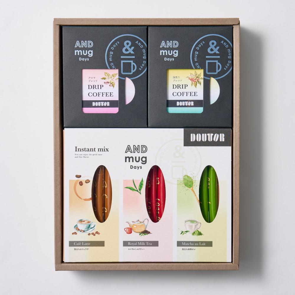 ■内容量:ドリップパック(アロマブレンド3P・深煎りブレンド3P×各1個)、インスタントスティック(泡立ちカフェラテ・ロイヤルミルクティー・泡立ち抹茶オレ×各3本)