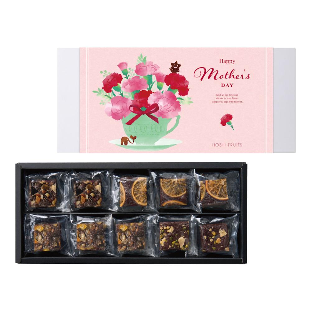 濃厚なチョコレートの生地に、香ばしいナッツや甘酸っぱいフルーツをトッピング。ピスタチオとアーモンド、ごろっとしたパイナップルやネーブル、たっぷりのドライフルーツとナッツ…。おいしさをぎゅっと詰め込んだキューブが、お口に小さなしあわせをお届けします。