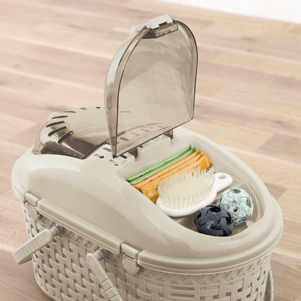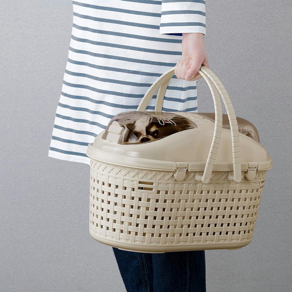 ●素材:ポリプロピレン、ABS樹脂、スチロール樹脂 ●適合種(目安):小型犬、猫、小動物 ●商品内寸(約):395×205×255mm ●扉間口サイズ(約):フタ:430×240mm、小窓:175×155mm ●耐荷重(約):8kg未満