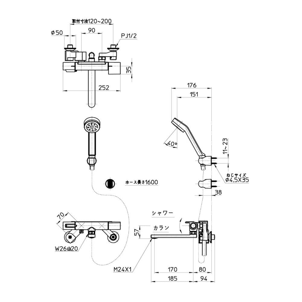 ●シャワーホース長さ:1.6m