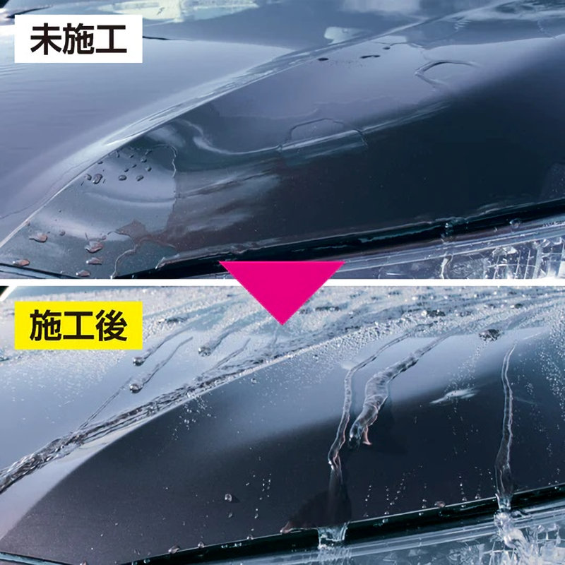 雨や洗車に強く、強烈な水弾きと深みのある艶が持続します。