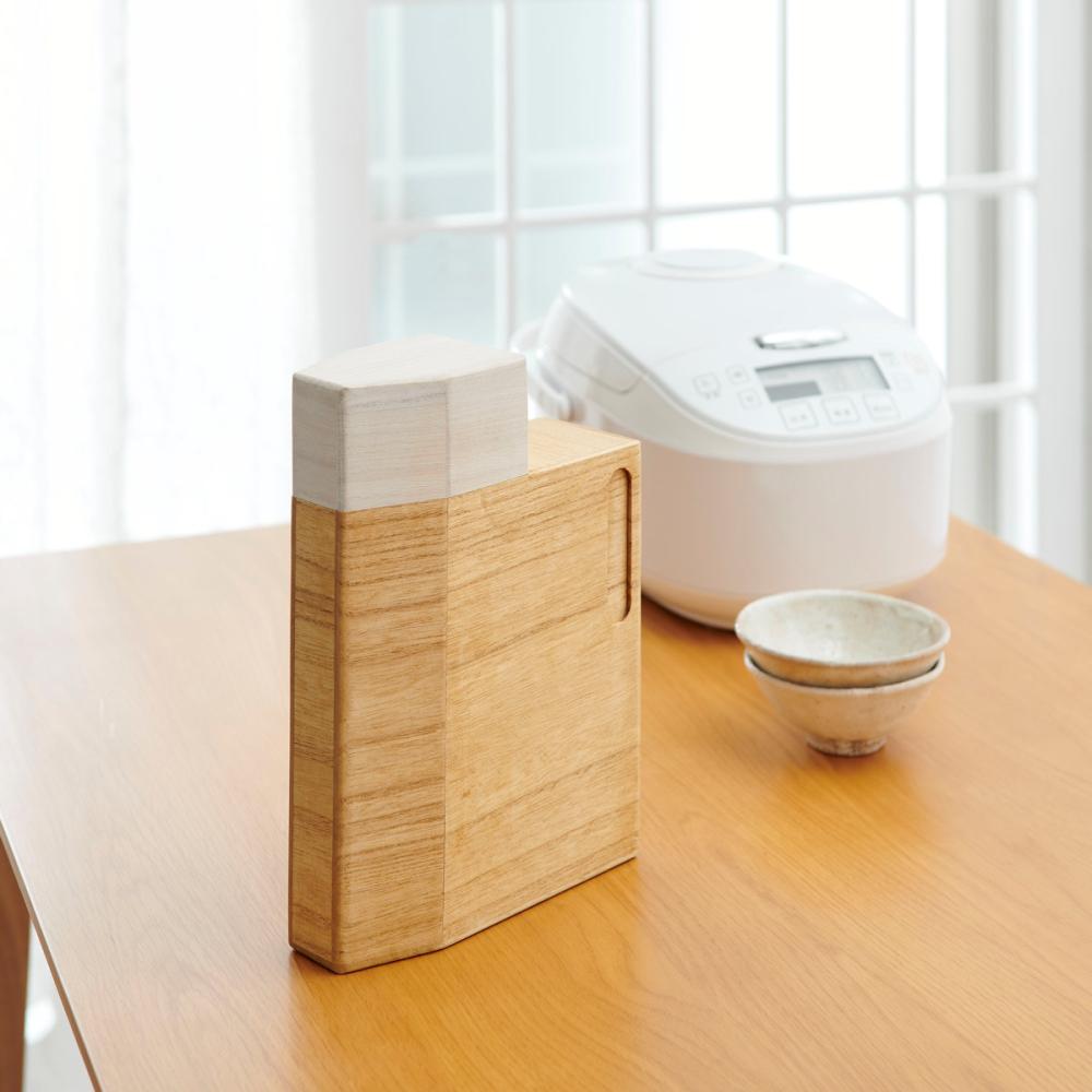■蓋はお米を計れる軽量カップとして使えて、内側の板が一合の目安となり擦切らず計れます。