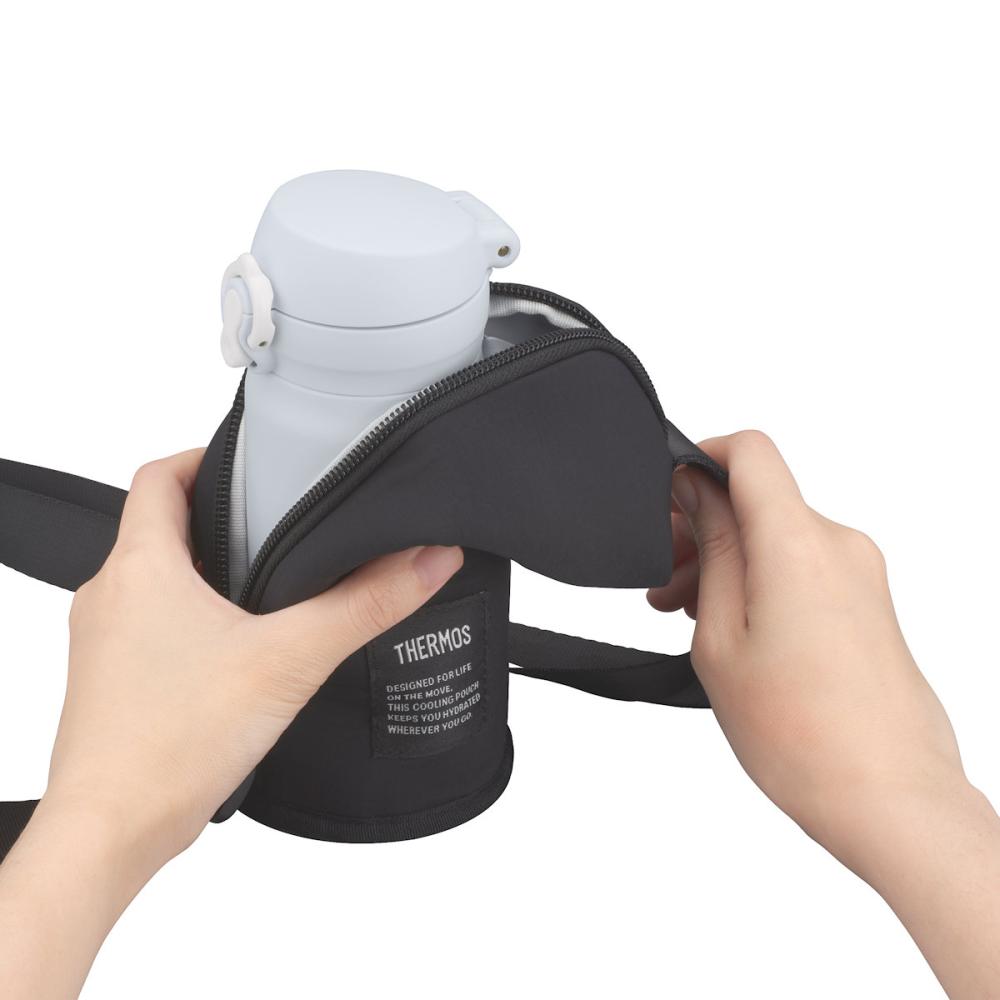 幅6.5cm以下、高さ19.5cm以下のサーモス製真空断熱ボトルに対応しています。 ※シリコーンゴムの底カバーは外してご使用ください。 ■冷たさを運ぶIsoTec断熱構造。保冷バッグとしても使える ■ポーチに入れたまま飲める ■汚れをふき取りやすい内生地(PEVA) ■洗濯機OK
