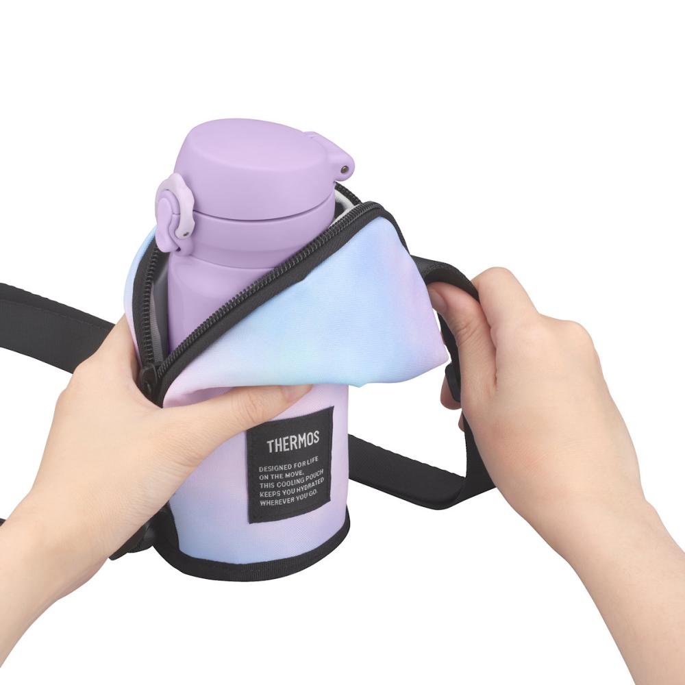 幅6.5cm以下、高さ19.5cm以下のサーモス製真空断熱ボトルに対応しています。 ※シリコーンゴムの底カバーは外してご使用ください。 ■冷たさを運ぶIsoTec断熱構造。保冷バッグとしても使える ■ポーチに入れたまま飲める ■汚れをふき取りやすい内生地(PEVA) ■洗濯機OK