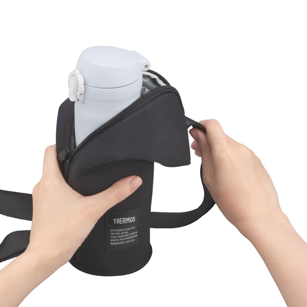 幅7.5cm以下、高さ25.5cm以下のサーモス製真空断熱ボトルに対応しています。 ※シリコーンゴムの底カバーは外してご使用ください。 ■冷たさを運ぶIsoTec断熱構造。保冷バッグとしても使える ■ポーチに入れたまま飲める ■汚れをふき取りやすい内生地(PEVA) ■洗濯機OK