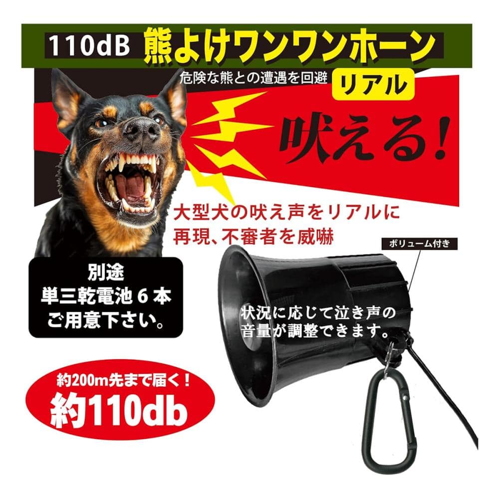 大型犬の吠え声をリアルに再現して危険な熊、動物との遭遇を回避します。