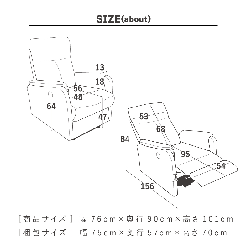 外寸:約幅76×高さ101~84×奥行90~156cm