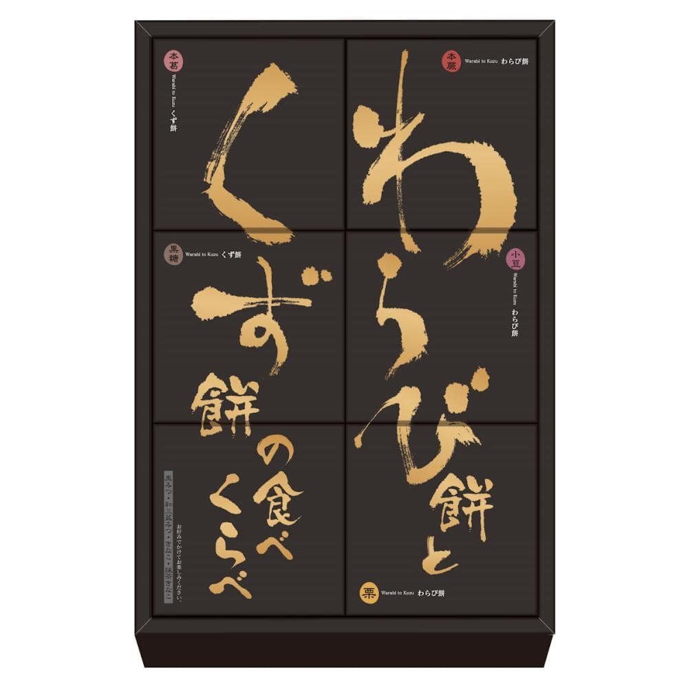内容量:わらび餅(本蕨・栗・小豆×各1個)、くず餅(本葛・黒糖×各1個)、きな粉×3個、抹茶きなこ×2個、黒みつ×3個、和三盆みつ×2個