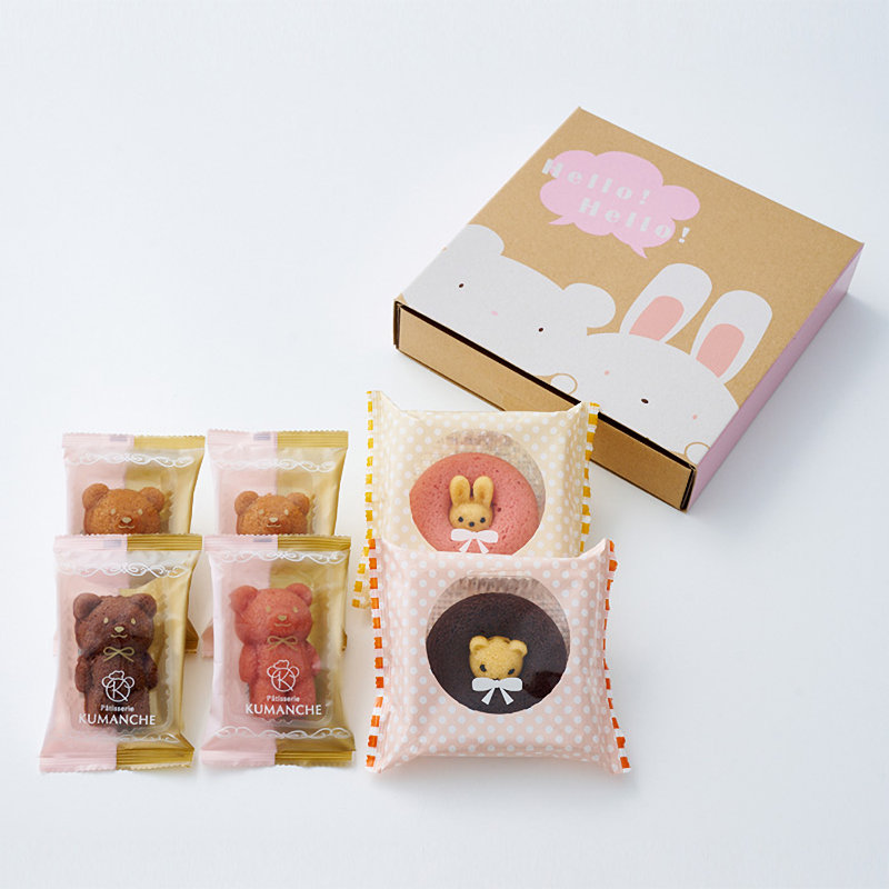 内容量:アニマルドーナツ(うさぎイチゴ・くまチョコ)×各1個、マリアージュフィナンシェ(バナナ×キャラメル×2個、チョコ×オレンジ・ベリー×ベリー
