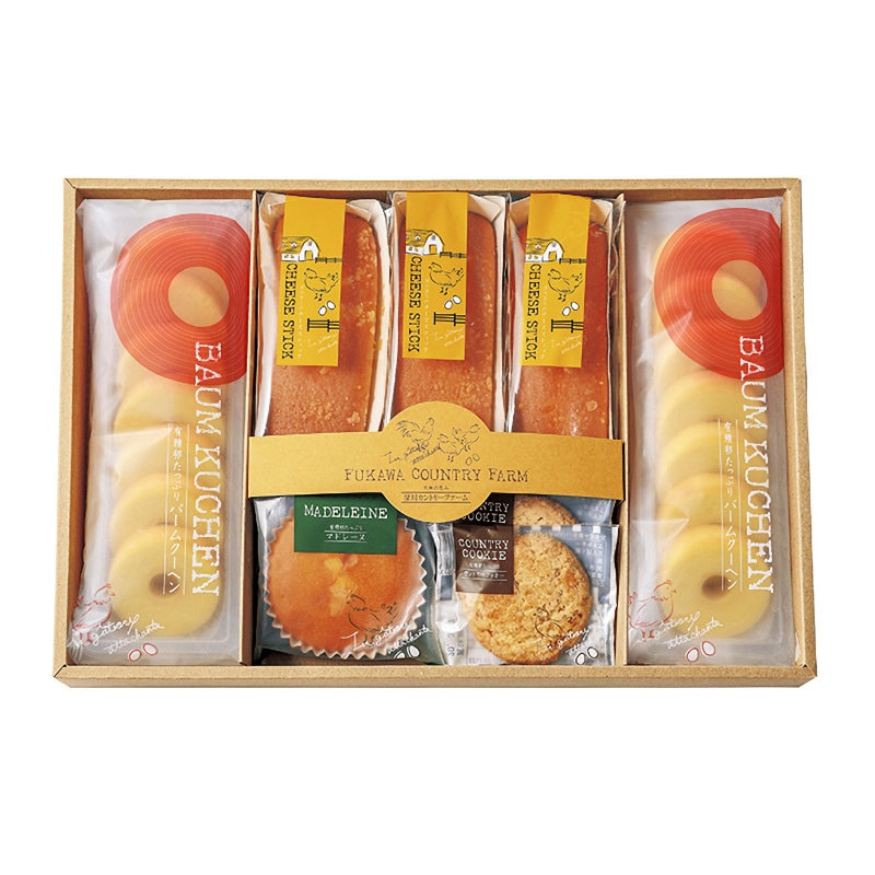 内容量:チーズスティック×3個、オートミールクッキー×2枚・ミニバームクーヘン7個入×2袋、マドレーヌ(プレーン)×1個
