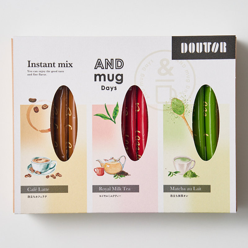 内容量:インスタントスティック(泡立ちカフェラテ・ロイヤルミルクティー・泡立ち抹茶オレ×各3本)