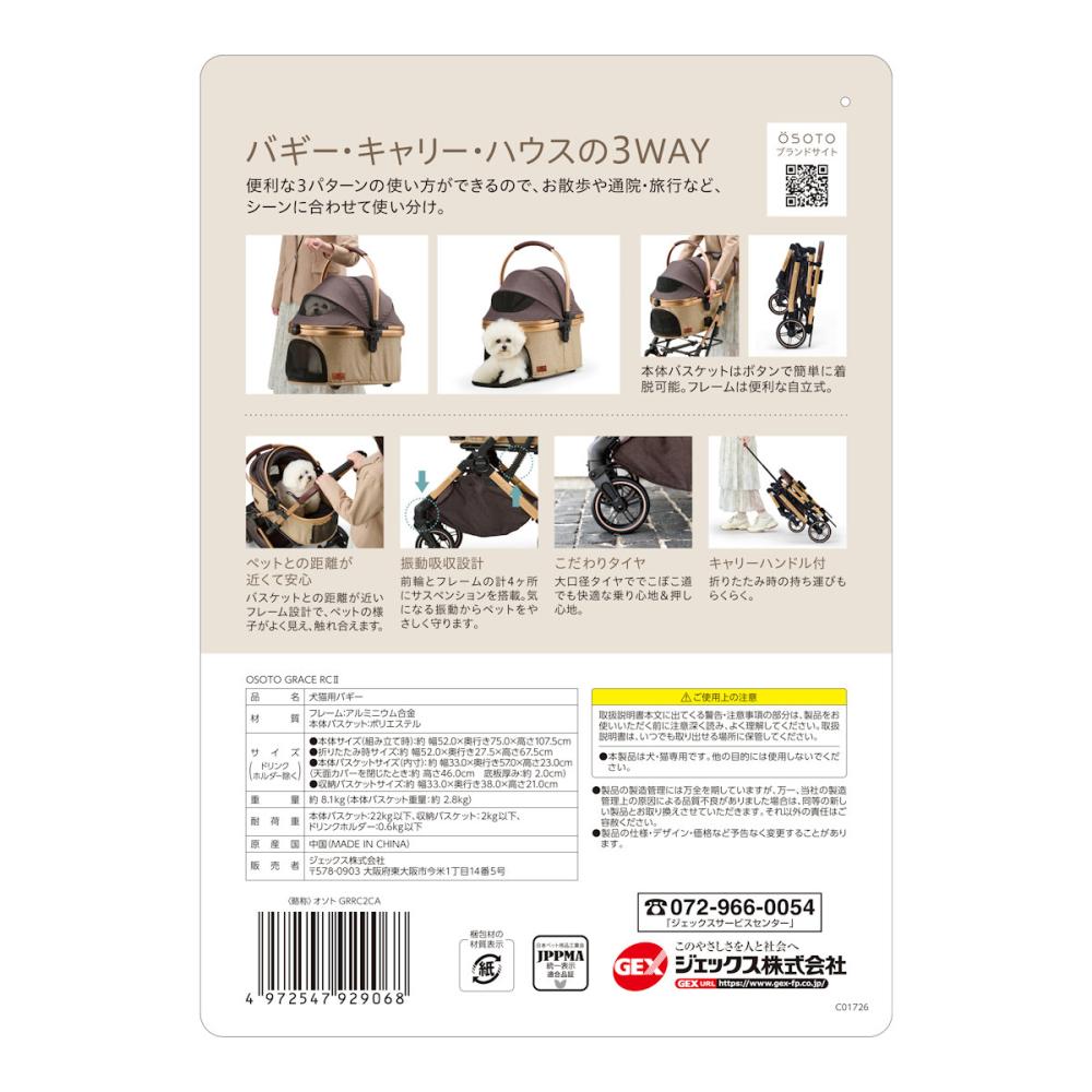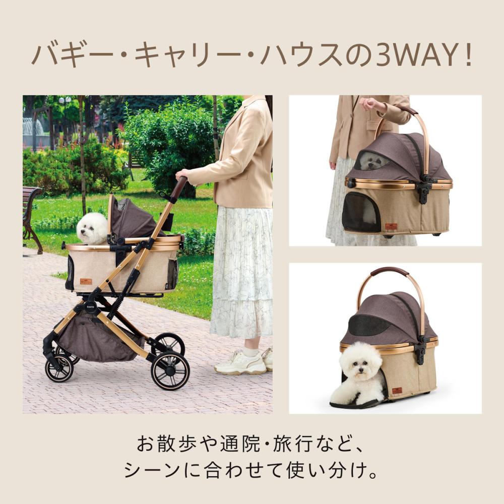 ●【こだわりタイヤ】:大口径タイヤででこぼこ道でも快適な乗り心地&押し心地。前輪とフレームの計4ヶ所にサスペンションを搭載。気になる振動からペットをやさしく守ります。