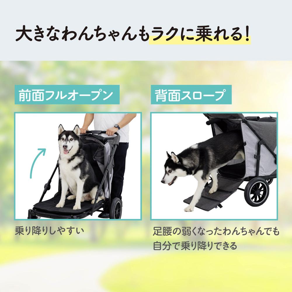 ●【大型犬や中型犬2頭に対応した広々設計 】:大型犬1頭、あるいは中型犬2頭でものびのびと過ごせる快適な広さを確保しており、耐荷重は40kg以下となっています。