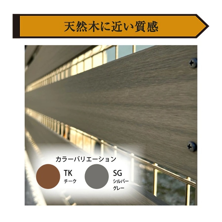ご注意 ■ご使用環境に応じて「錆」「色落ち」「歪み」「撓み」などの経年劣化が生じます。 ご使用期間に関わらず、経年劣化が発生した場合の交換・返品の対応は行っておりませんので、予めご了承の上、ご購入を頂きますよう宜しくお願い致します。 ※初期不良・破損は交換対応を行っております。 ■メッシュフェンスに取り付ける商品となります。メッシュフェンスの破損については弊社では保障できませんので予めご了承ください。 ■人工木の表面には製造時に発生した粉や繊維状のものが残っている場合があります。天然木のささくれやトゲなどとは異なりますので、刺さったりすることはありません。 ■生産の都合上、人工木やアルミに色斑、傷、凹み、色味の違いがある場合や、サイズに若干の誤差がある場合がございます。(交換、返品の対象外となります) ■組み立て後、若干のガタツキが発生する場合がございます。(交換、返品の対象外となります) ■耐久年数はご利用環境下によって異なる為、お答え致しかねます。 ■ご使用前に組立説明書をよくお読みいただき、正しくお使いください。