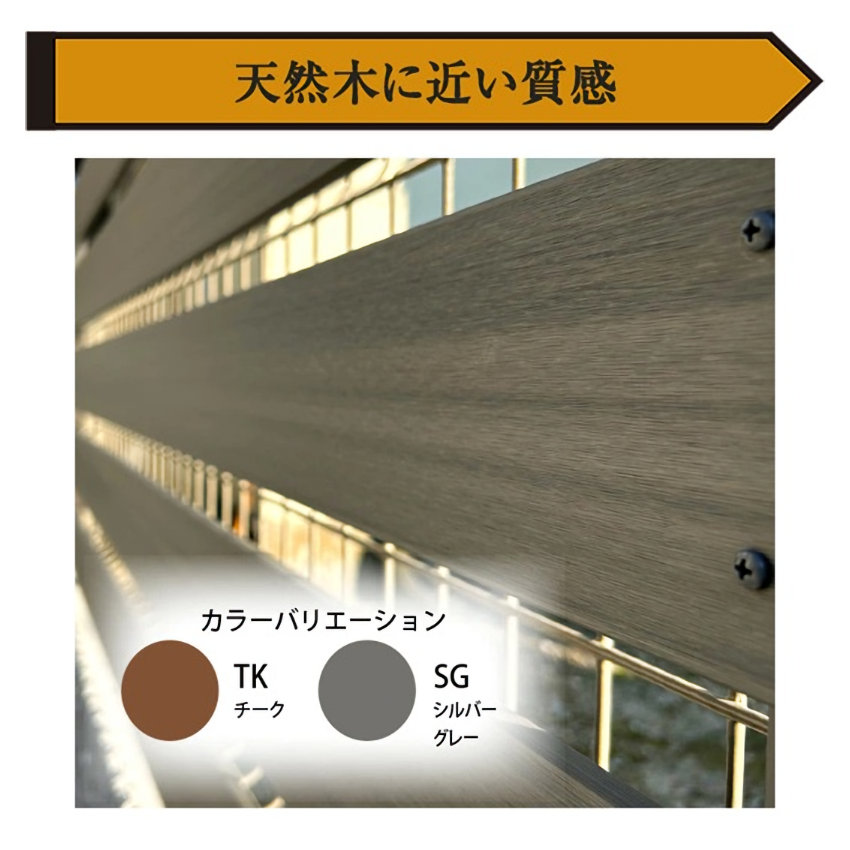 ご注意 ■ご使用環境に応じて「錆」「色落ち」「歪み」「撓み」などの経年劣化が生じます。 ご使用期間に関わらず、経年劣化が発生した場合の交換・返品の対応は行っておりませんので、予めご了承の上、ご購入を頂きますよう宜しくお願い致します。 ※初期不良・破損は交換対応を行っております。 ■メッシュフェンスに取り付ける商品となります。メッシュフェンスの破損については弊社では保障できませんので予めご了承ください。 ■人工木の表面には製造時に発生した粉や繊維状のものが残っている場合があります。天然木のささくれやトゲなどとは異なりますので、刺さったりすることはありません。 ■生産の都合上、人工木やアルミに色斑、傷、凹み、色味の違いがある場合や、サイズに若干の誤差がある場合がございます。(交換、返品の対象外となります) ■組み立て後、若干のガタツキが発生する場合がございます。(交換、返品の対象外となります) ■耐久年数はご利用環境下によって異なる為、お答え致しかねます。 ■ご使用前に組立説明書をよくお読みいただき、正しくお使いください。