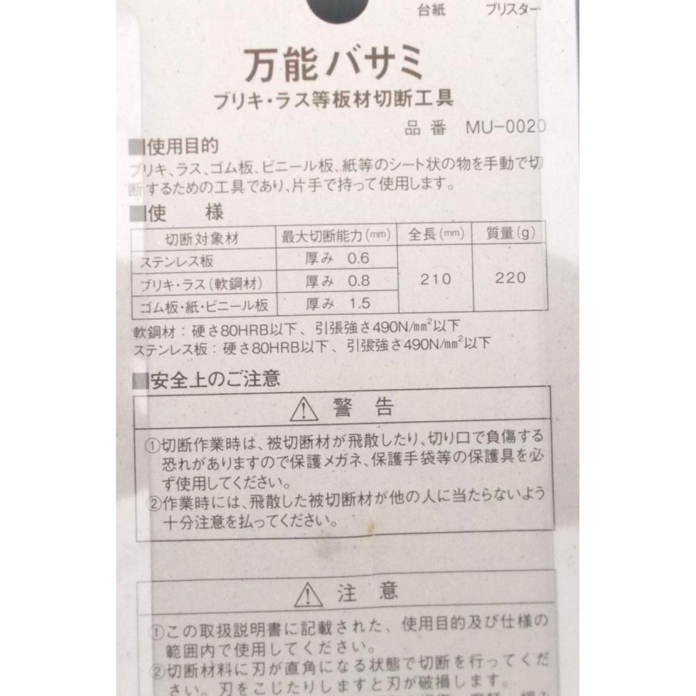 ステンレス板(0.6以下)ブリキ(0.8以下)ゴム、ラス、ビニール板等の切断
