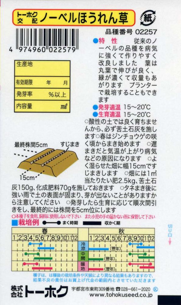 ●掲載のパッケージ画像(表側・裏側)に記載されている蒔き時期、収穫時期、発芽適温、発芽率、品種特長、その他注意事項をよくご確認の上、ご注文ください。