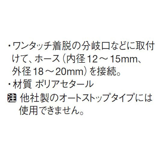 ワンタッチ着脱の分岐口などに取付けてホースを接続