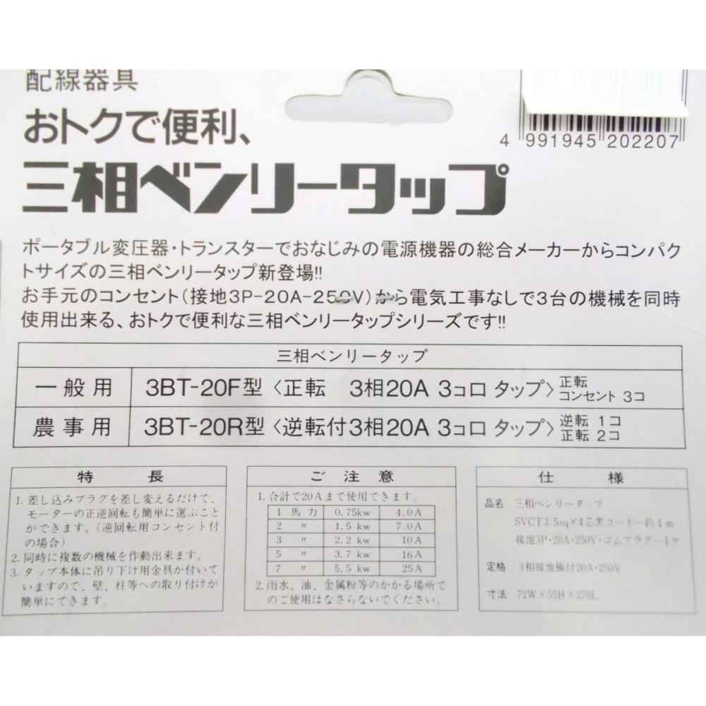 ●お手元のコンセント(接地3P-20A-250V)から電気工事なしで3台の機械を同時使用可能 ●タップ本体に吊り下げ用金具がついていますので、壁、柱等への取付けが簡単 ●用途:乾燥機・もみすり機・精米機・農事用臨時作業所、展示会場、工場等