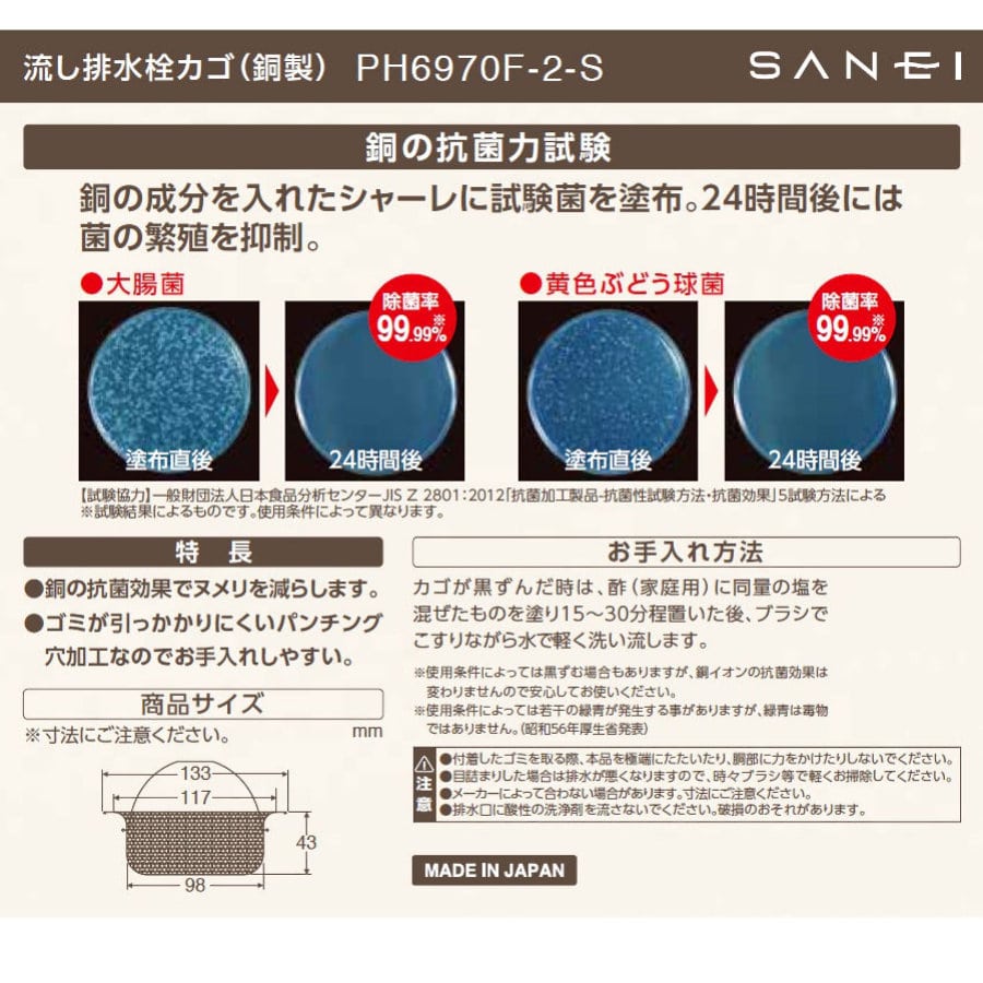 SANEI(サンエイ)流し排水栓カゴ 銅の抗菌効果 ヌメリ防止 PH6970F-2-S