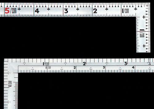外側基点の内側目盛が付いています。シルバー加工で表面の反射を抑え目盛が読み取りやすくなっています。精度 直角度100mmにつき0.1mm以下 長さの許容差0.2mm以下 表目盛 長枝外目盛1尺 内目盛7寸 短枝外目盛5寸 内目盛3寸 裏目盛 長枝外目盛角目 内目盛1尺 短枝外目盛5寸 内目盛丸目 表示 赤数字入 十二支付 形状同厚 本体ステンレス