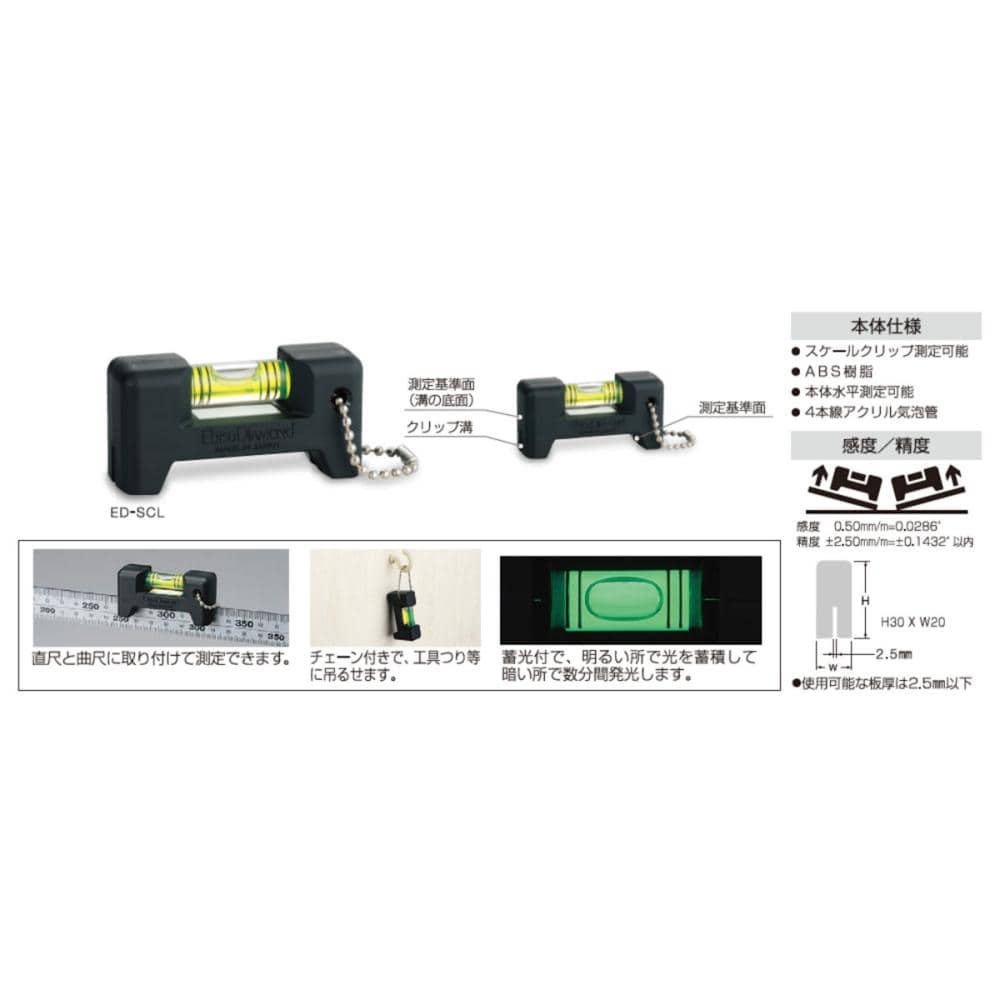 直尺・曲尺に取り付けて測定出来ます。チェーン付きで吊るせます。蓄光付きで数分間暗い所で発光します。日本製