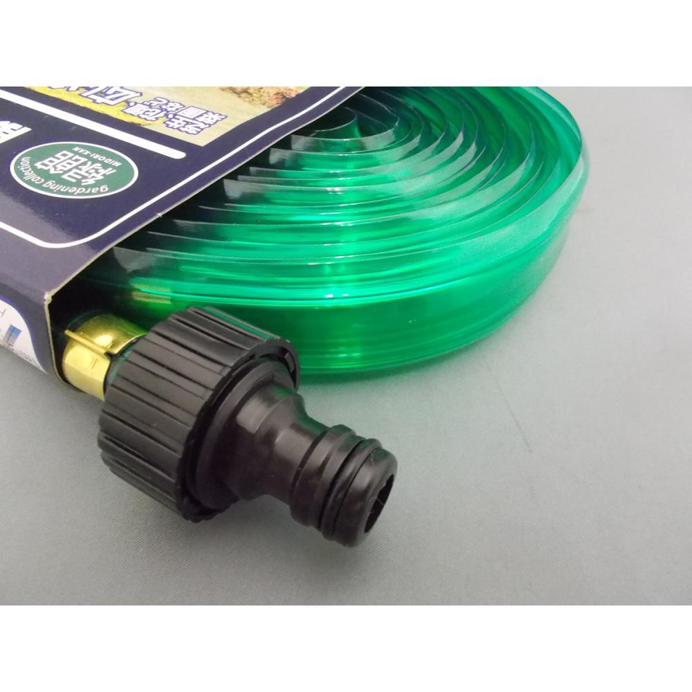 チューブには約6cm間隔で穴が開いており(穴径0.8mm)、チューブから横に広がる散水幅は約1m~3mとなります。※一般家庭の水圧としてとなります。
