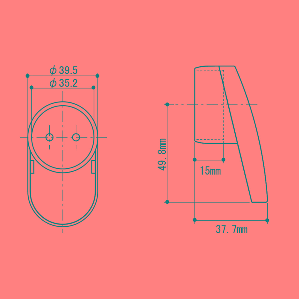 丸棒の端部分をおさめるパーツです。取付け用ビス付