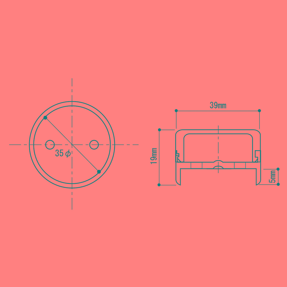 丸棒の端部分をおさめるパーツです。取付け用ビス付