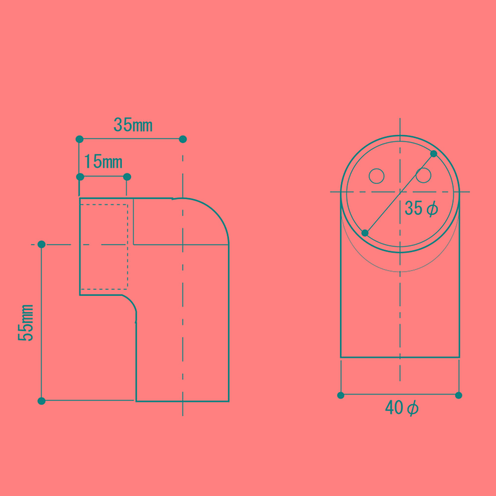 丸棒の端部分をおさめるパーツです。取付け用ビス付
