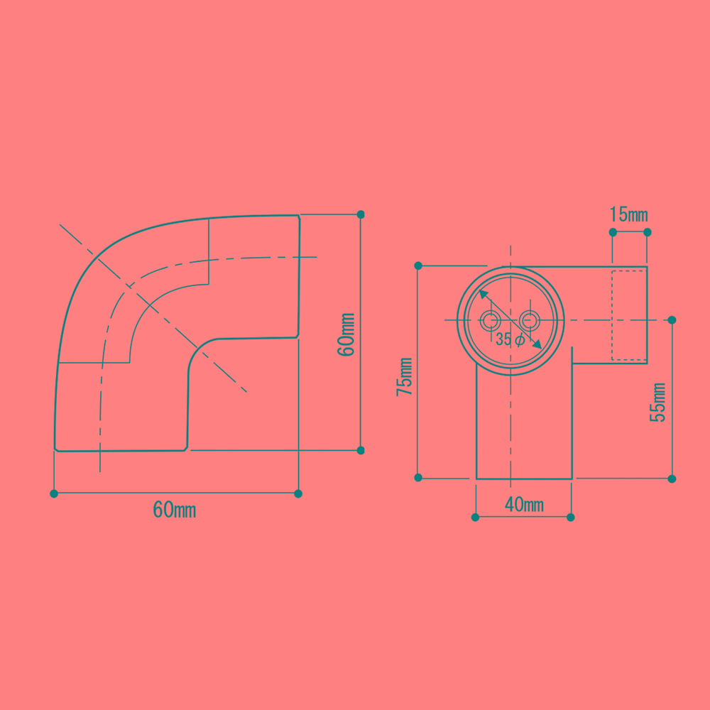 丸棒を90度にジョイントし壁に取付けます。取付け用ビス付