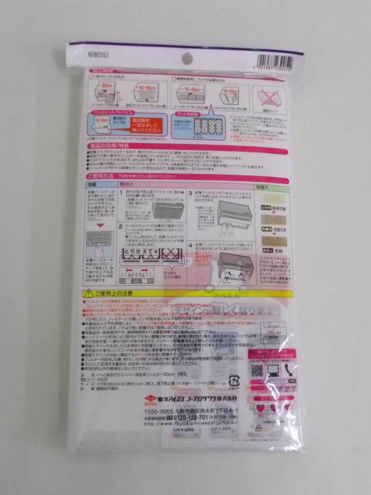 深型用 シールみたいに取付簡単 パッと貼るだけで簡単・きれい 60cm幅 3枚入 厚手で吸油量2倍
