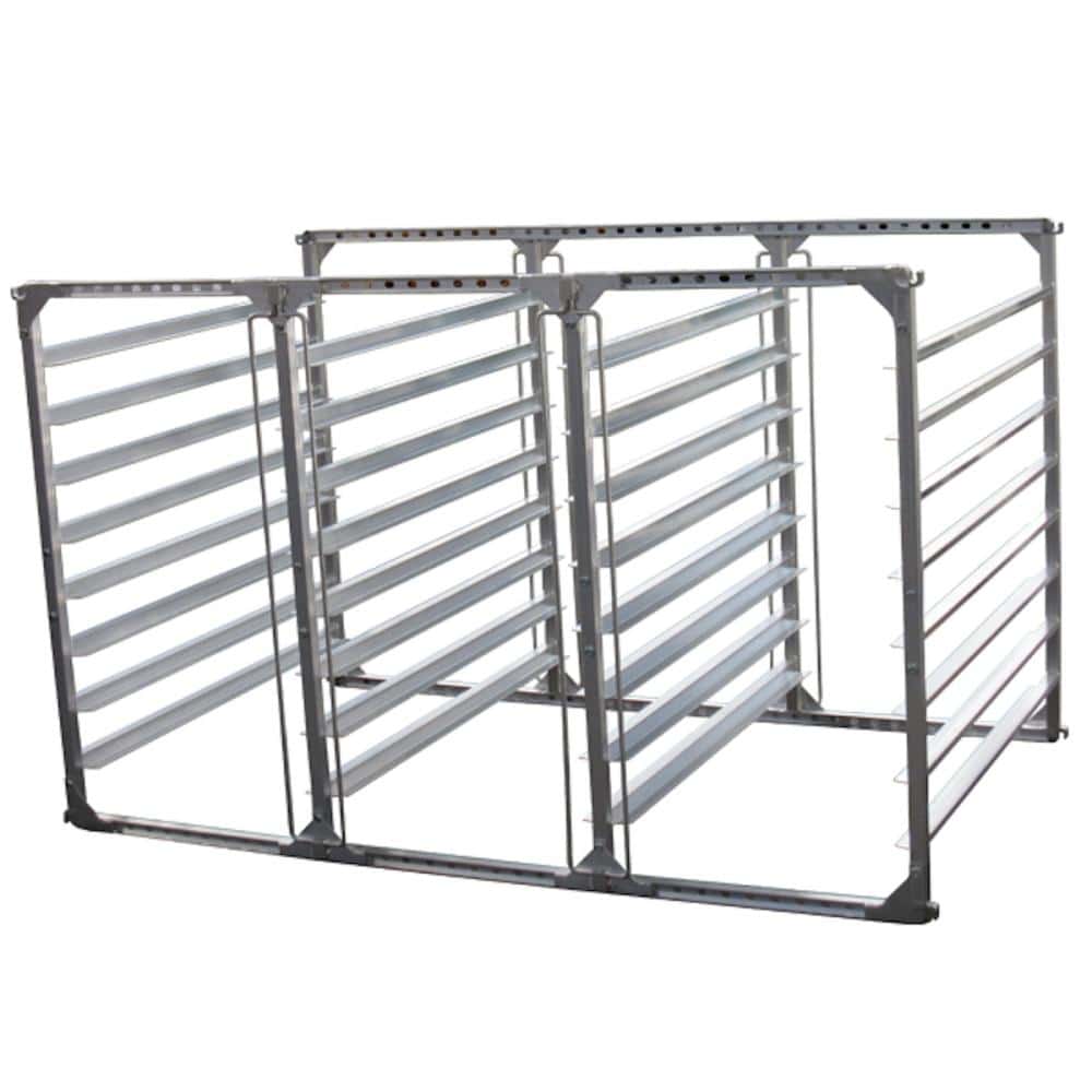 棚間隔は約13cm 最も強度の必要なジョイント部分に高強度のアルミブロック材を採用しアルミ製補強板付きで頑丈です。また、部品・ナット部分は本体部分に装着してあり、ボルト、ワッシャーは一体型ですので12本のボルトのみで組立・分解がスムーズに出来ます。