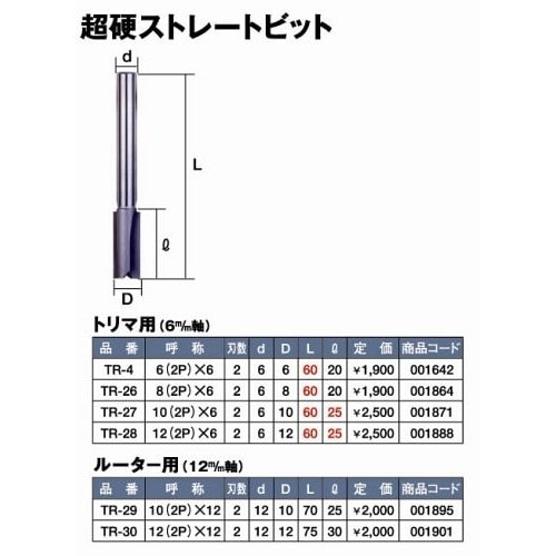 超硬ストレートビット 2枚刃 12×12TR-30