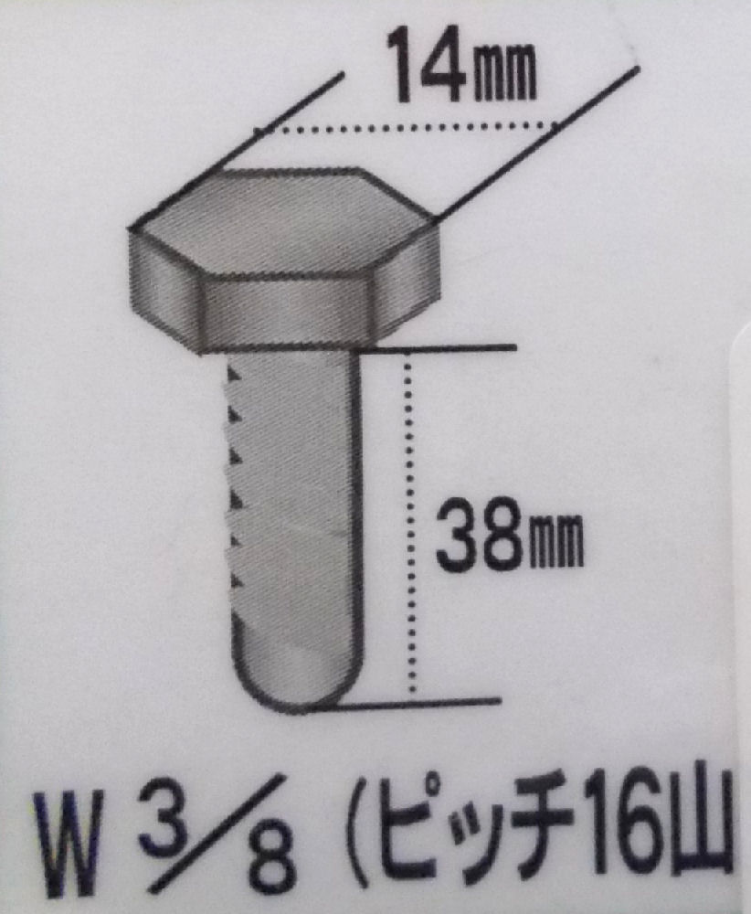 ●材質:鉄 ●ねじ山規格:ウィット:並目 ●表面処理:ユニクロ ●サイズ:3/8X38 ●太さ(内径):W3/8 ●太さ(外径):38 ●適応スパナサイズ:14 ●ねじピッチ:16山