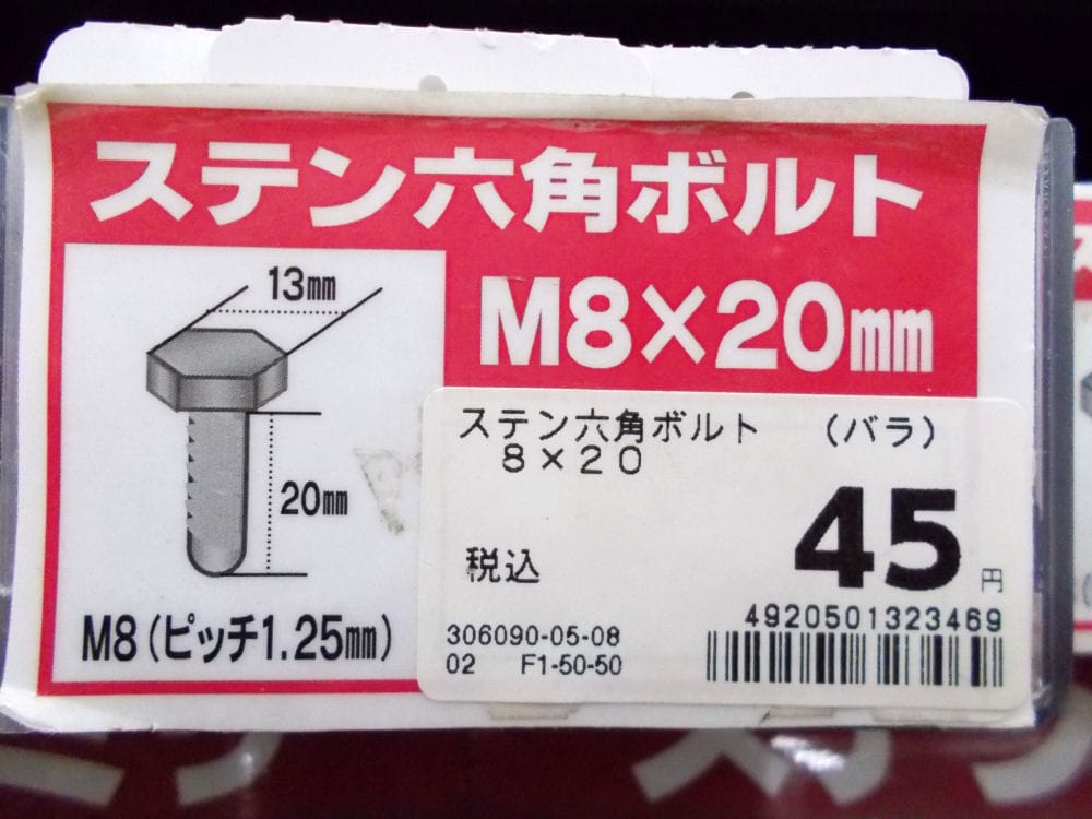 ●材質:ステンレス ●ねじ山規格:メートル:並目 ●表面処理:生地 ●サイズ:8X20 ●太さ(内径):8 ●太さ(外径):20 ●適応スパナサイズ:13 ●ねじピッチ:1.25