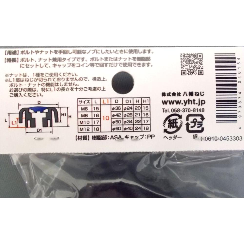 ボルト、ナット兼用タイプです。ボルトまたはナットを樹脂部にセットして、キャップをコイン等で回すだけで使用できます。