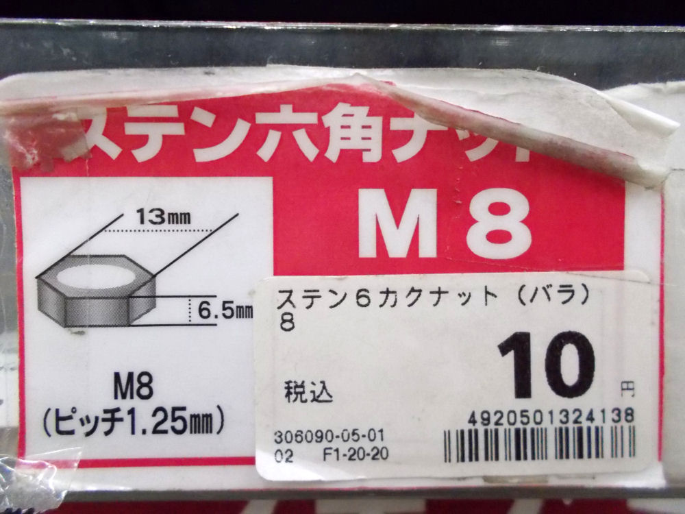 ●材質:ステンレス ●ねじ山規格:メートル:並目 ●表面処理:焼付き防止コート ●サイズ:8 ●太さ(内径):8 ●太さ(外径): ●適応スパナサイズ:13 ●ねじピッチ:1.25